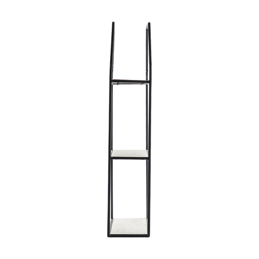 Iron Wire 3 Compartment Wall Shelf with Mango Wood Shelves and Hooks