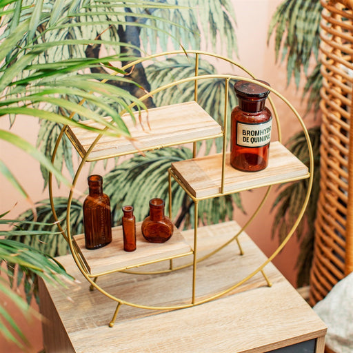 Original price £25.00 - Original price £25.00Original price£25.00£25.00 - £25.00Current price £25.00Round Shelf - Antique Gold Following the gold trend in home interiors. Led by a colourway of gold across the geometric design. Accompanied by fou...