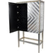 The Lexington bar cabinet features antiqued mirror panels, inset in a Champagne gold painted wooden and mdf frame. A mix of antiqued and clear mirror glass creates a timeless chevron design on each door panel. Doors are secured by a push latch mechanism to ensure a flush front surface. Inside the cabinet are two toughened glass shelves, with glass holders in the top to keep your stemware organised. The shelf heights are: Top shelf 46cm, perfect for bottles, middle shelf 19cm, great for tumblers, and bottom shelf 21cm, perfect for smaller bottles. Shelves can be removed to alter internal storage format. This bar cabinet sits on four sturdy framed antiqued mirrored legs and simple self-assembly is required. Other items in our Lexham collection include the Lexham Sideboard and Wall Mirror.