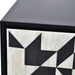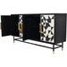 This buffet cabinet is truly something special. Its intricate bone inlay patterning sees contrasting ivory and black detailing create an attractive design. It features four doors and a single full-length shelf inside – ideal for use in dining rooms or hallways.