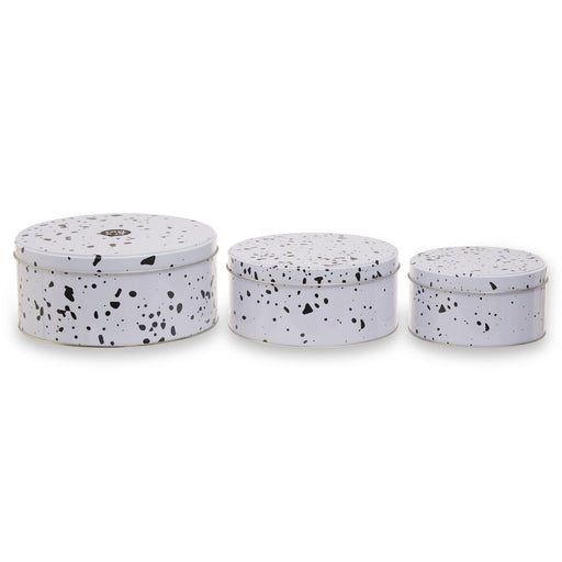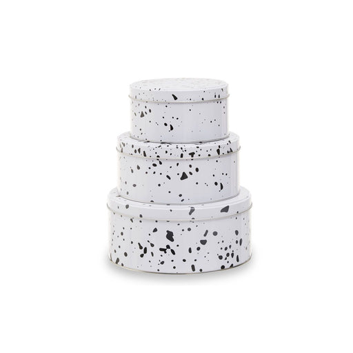Bold black speckles pattern the surface of this small storage canister.Small: H9 x W11 x D11cm Medium: H12 x W11 x D11cm Large: H16 x W11 x D11cm M...