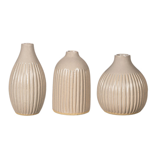 Grooved Bud Vases - Set Of 3 Designed with inspirations from the simple living trend. Finished with a speckled grey glaze and line grooves to emph...