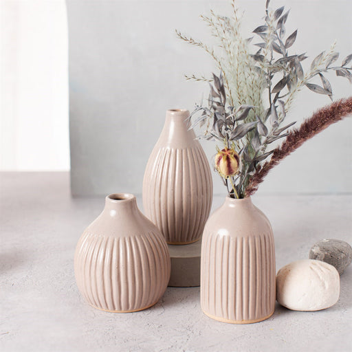 Grooved Bud Vases - Set Of 3 Blending together the popular Scandi style with Japanese influences. This set of three bud vases feature three differ...