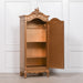Single Gold painted wardrobe in a French antique style with mirrored door, featuring detailed wooden hand carve crown and legs. The internal features include a hanging pole and 2 removable and adjustable shelf inside.