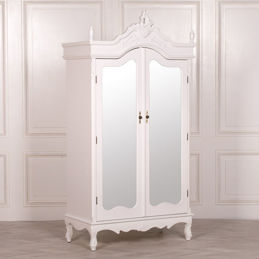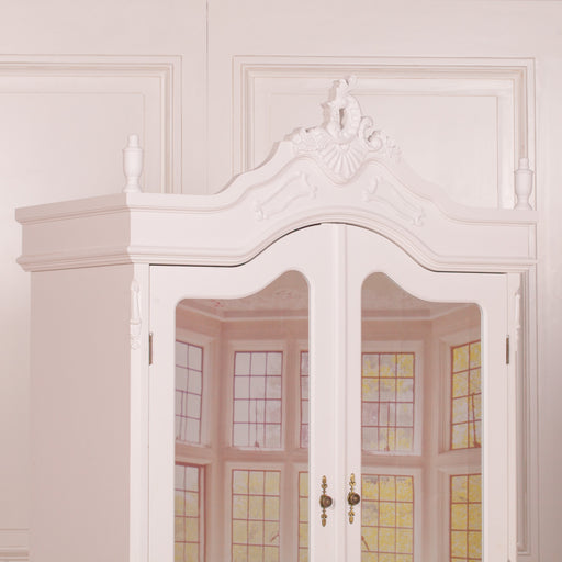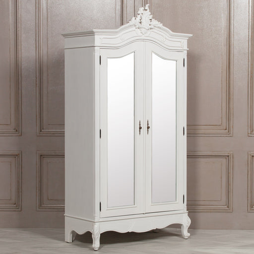 French Style White Carved Double Full Mirrored Armoire Wardrobe