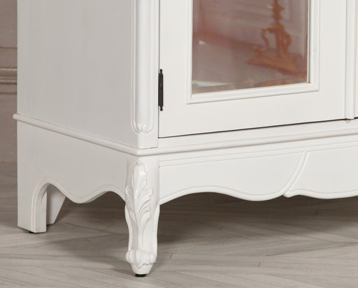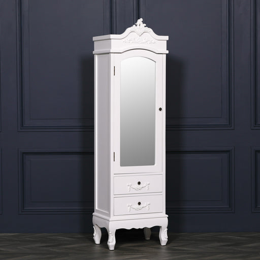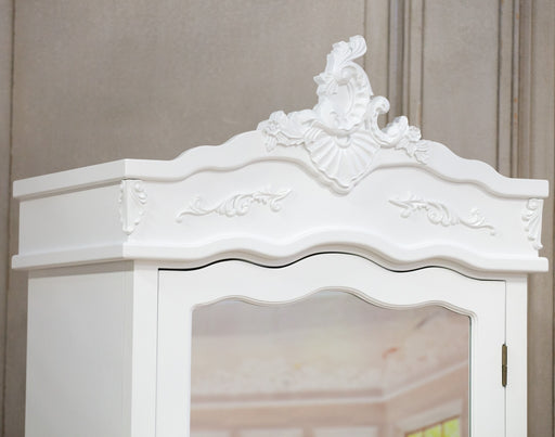 French White Carved Single Door Armoire With Mirrored Door