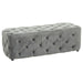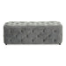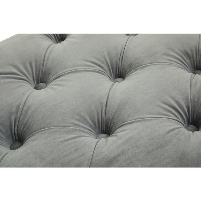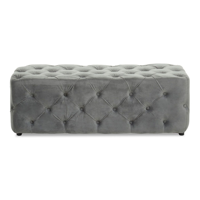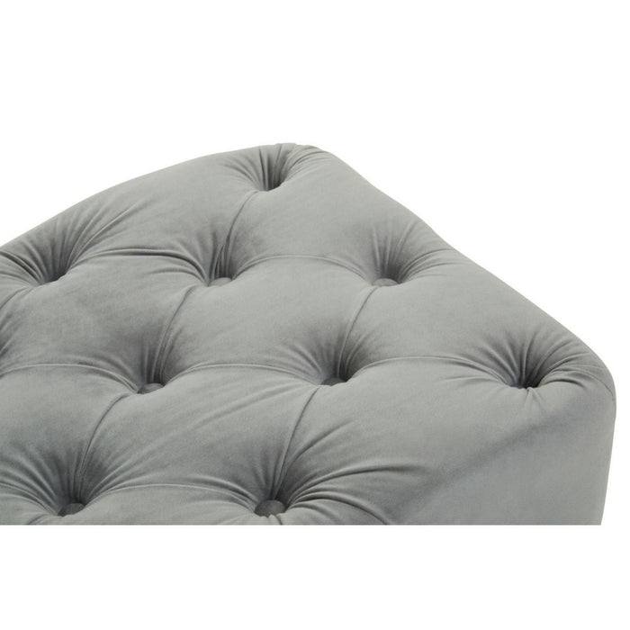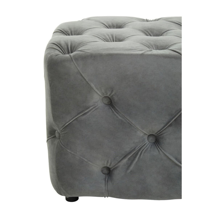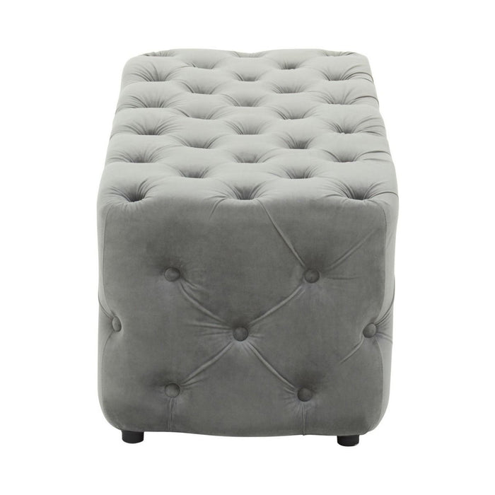 Sumptuously padded with soft foam for added comfort, this bench will add a chic statement to the living area. Featuring timeless elegance, this traditional button-tufted bench is upholstered with grey velvet. Ensuring a luxurious seating experience, this versatile bench is well-suited to an array of contemporary styles.