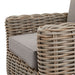 This is the Amalfi Collection Outdoor Five Seater Set. Arriving Spring '24, this premium quality HDPE outdoor wicker and glass set is the perfect blend of style and durability. Every detail of its construction has been built with your long-lasting enjoyment in mind. With a frame built from lightweight yet sturdy powder coated aluminium, it is protected against rust and corrosion within. Externally, the choice of 12mm round HDPE wicker weave delivers you the most realistic and hardwearing wicker on the market. Its hard wood, eco-friendly (fast-growing) acacia coffee table also offers long-lasting durability. Built to last, this set is weatherproof, rustproof and can remain outdoors year around (although, like anything, it will last even longer if stored under cover from the elements). The coffee table comes with a 5mm tempered glass table top, providing a safe and wipe clean surface for refreshments and ornaments. The sofa and chairs come with comfortable seat cushions in a grade 5 Olefin fabric that keep their colour. The cushions are shower-resistant, UV-resistant and easy to remove. Because Olefins are more resistant to mildew than polyester and dry more quickly, they are an excellent choice for furniture exposed to the elements. Ideally cover them when not in extended periods of use and bring them inside during winter months for increased longevity. Cleaning this outdoor furniture will be easy - HDPE wicker can be washed with mild soapy water (without abrasive solvents) and a soft brush. The cushions are sponge clean only.