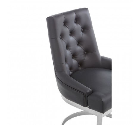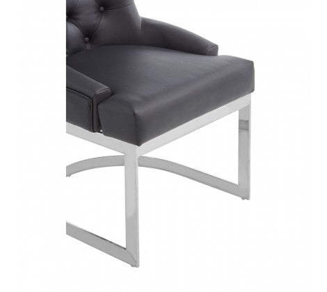 Upholstered in faux black leather, this chair has foam-padded seat and tapered backrest featuring button detail in a diamond pattern. Made from stainless steel, the classic U-shaped silver-finish base gives a touch of vintage glamour to this contemporary chair.