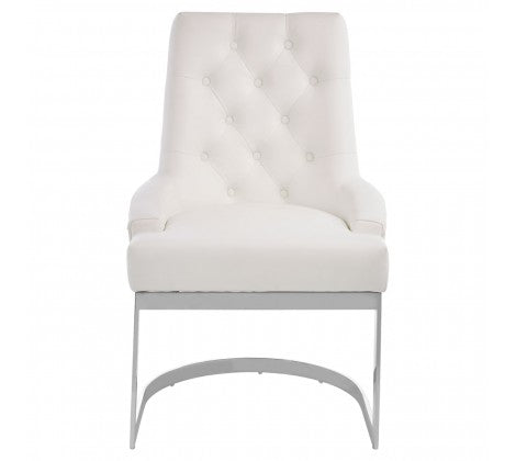 Ivory and Silver Luxe Faux Leather Dining Chair