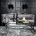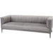 Beautiful and elegant soft grey velvet three seater sofa with ribbed back and arm detail. Finished with contrasting matt metal trim and legs.