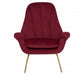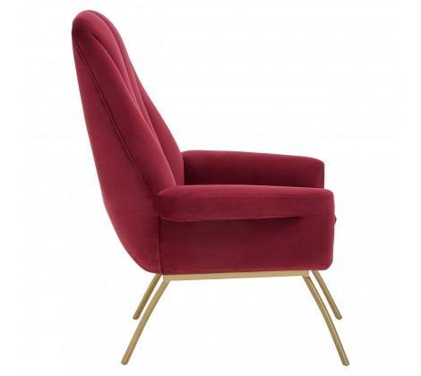 Upholstered in lavish wine velvet, this chair will add a luxe accent to the living room with its plush and sumptuous padding. Slender gold finish stainless steel legs coordinate with the high back, channel tufted backrest and low armrests for a decorative and modern aesthetic.