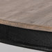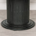 Round column dining table handcrafted from mango in a black painted wood finish base and rustic wood finish table top. The table has a rounded hand-carved detailed columned base.