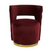 A sophisticated luxe-style accent chair with luxurious upholstery and a quilted backrest. Inspired by classic cocktail seating, the Bola chair is covered with tactile velvet with a contemporary wine finish. The gold coloured stainless steel base has a brushed design for a subtly textured finish.