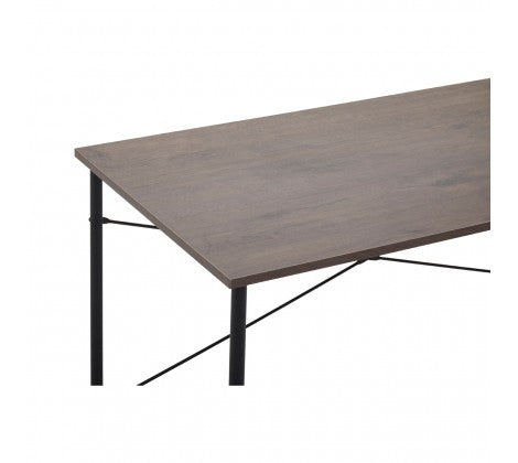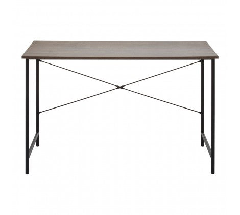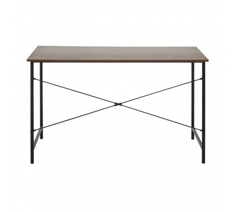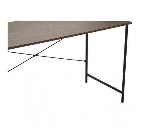 The Bradbury desk is ideal for a home office or assisting with homeschooling. The rectangular dark oak effect, wooden top sits neatly upon a black metal frame which is minimal and subtly industrial in style. A cross pattern structure adds stability and detail to the desk.