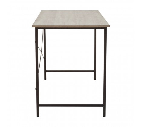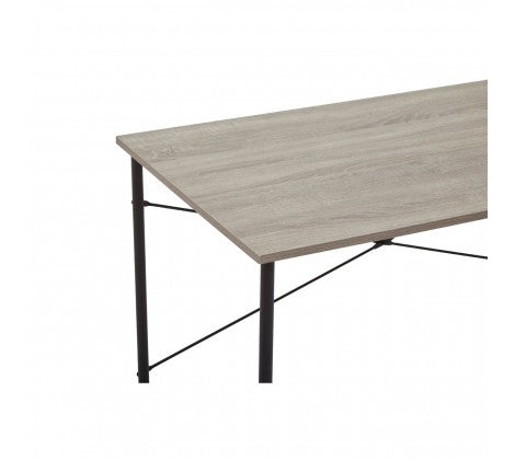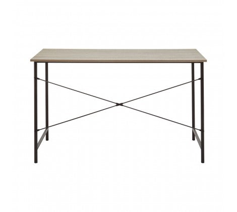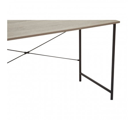 The Bradbury desk is ideal for a home office or assisting with homeschooling. The rectangular grey oak effect, wooden top sits neatly upon a black metal frame which is minimal and subtly industrial in style. A cross pattern structure adds stability and detail to the desk.