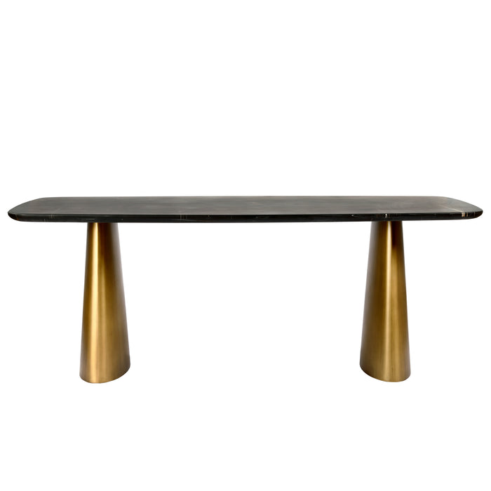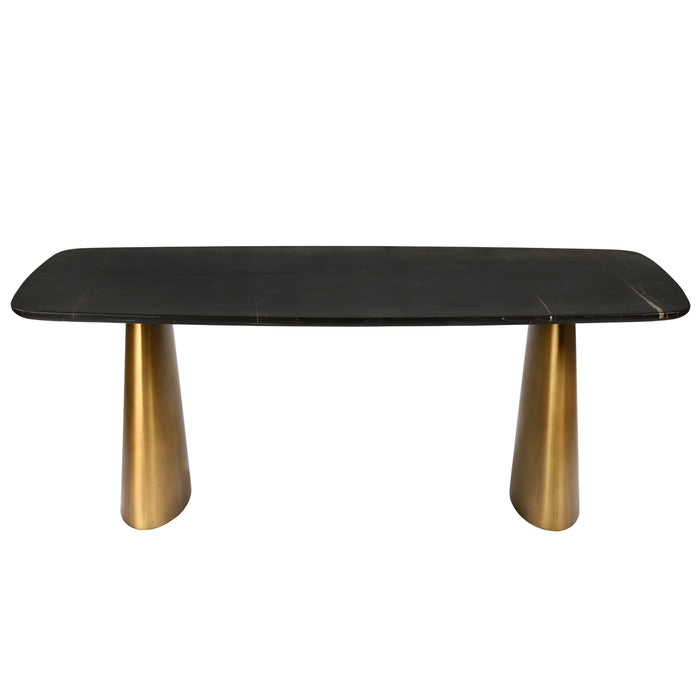 Caldera Solid Black Marble Dining Table on Brass Legs 200x90cm