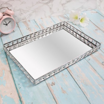 Bring a gorgeous glitzy hint to your home interior with this sleek rectangular shaped tray with added crystal accents and a mirrored centre