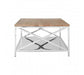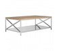 This coffee table seamlessly combines natural textiles with metallic tones.