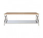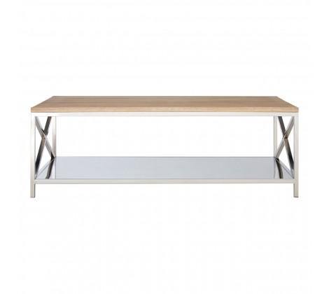 This table is comprised of an oak wood surface on top of highly polished stainless steel. The lower shelf is highly reflective, adding a sense of brightness to the product. The oak tabletop has been left unstained, and its beautiful natural grain gives the surface a delightful texture to the touch. It can be paired with other items from the range to complete a décor.