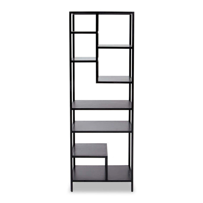 The Cibo steel shelf unit features an open-frame structure and provides ample space for decorative and functional display. This eight-tiered metal shelf is a versatile unit that can amplify the visual aesthetics of a room with its subtly industrial design. This shelf unit in the black finish is ideal for an elegant showcasing of ornaments and books in the home office space.