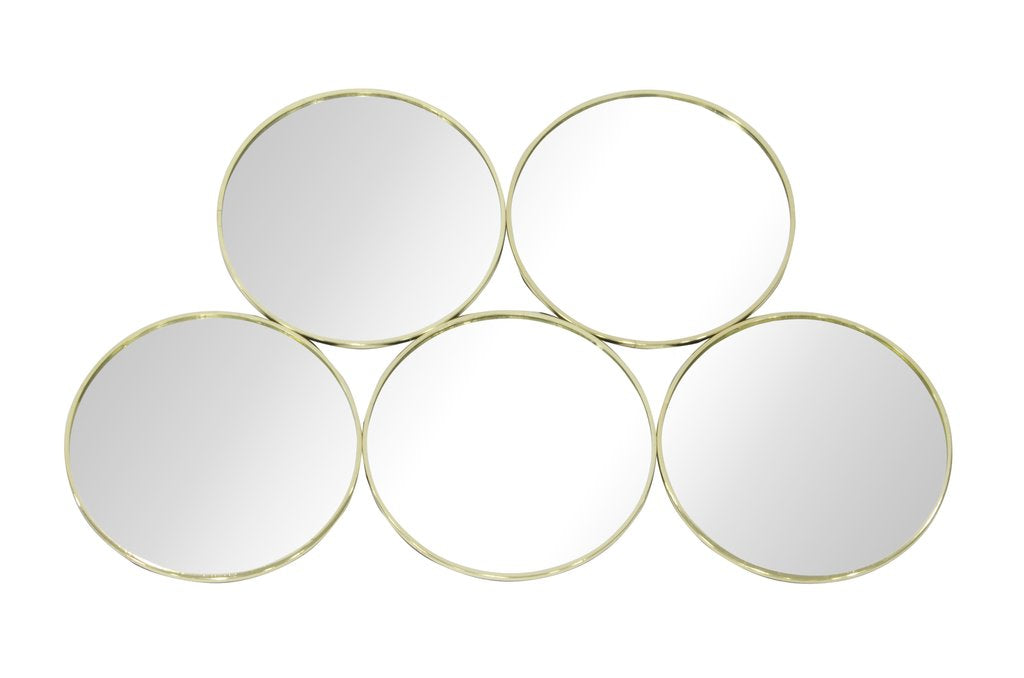 Give the illusion of a bigger and brighter room with the quality circles mirror. The golden metal frame holds the five rounded mirrors together to create a new dimension to the room. Fix on to a plain wall for a minimalistic look that will add simple character to your living space.