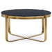 This coffee table with a sleek transitional design and luxe framing will add depth and glamour to home décor. Stainless steel in brushed gold finish forms the criss-cross base of this coffee table. The clean, intersecting base supports the black tempered glass top in a smooth finish.