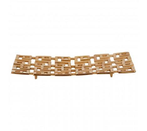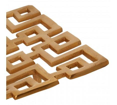 The design of the large plate was inspired by the sophistication of the art deco period. Created from smooth metal, the decorative plate boasts a geometric design in which lines intersect to create a visually appealing, glamorous pattern. A rich gold finish enhances the plate's luxurious aesthetic and lends it well to luxe style interiors.