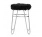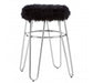 This stool has a black cushioned seat supported by a reflective silver base which combine to create a monochrome effect. This round stool has a padded seat of faux fur which gives a gentle furry effect by its tactile to the touch surface. It has chrome finish hairpin legs which are given an extra strength by a wide metallic ring at the middle. Each of these legs features a small anti-skid rubber tip to maintain stool’s balance on the floor.