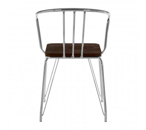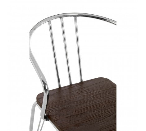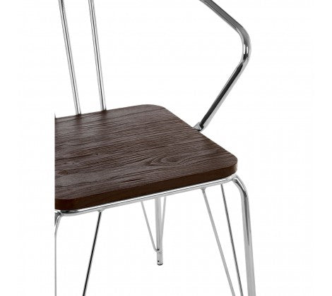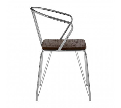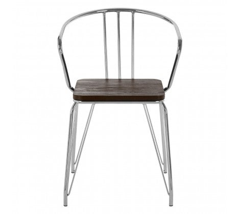 Chrome Metal And Elm Wood Arm Chair