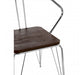 This New York loft chair adds soft industrial style to the dining area or living room. The district chair is formed around a frame made from chrome metal. It features hairpin legs and a wide and rounded backrest with a trio of vertical tubes running down its central section. The natural elm wood seat boasts a rich grain and textured finish that distinguishes itself from the smooth metal.