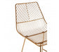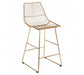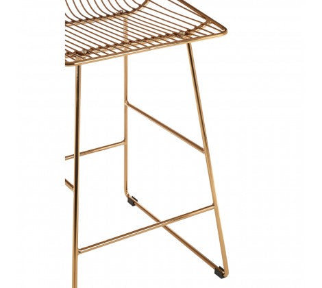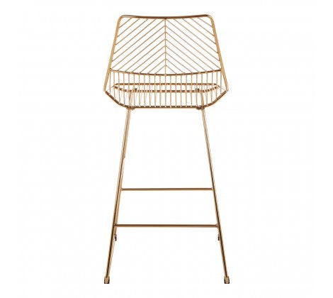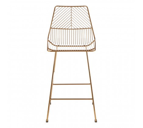 Introduce a geometric accent to the kitchen bar area with the District chair. This highly contemporary bar chair achieves its minimal look thanks to the seat's use of tough gold coloured metal wire. Its tapered backrest is divided into three sections, two of which are configured to give the wire design a leaf effect. The third lower section is composed of vertical wires that run through the length of the seat. It stands on elongated A-frame legs which support a wireframe footrest.
