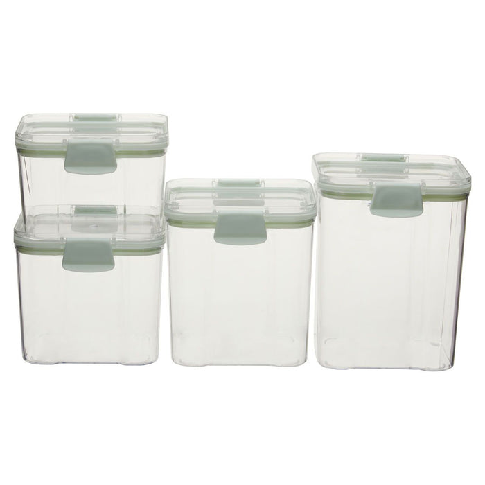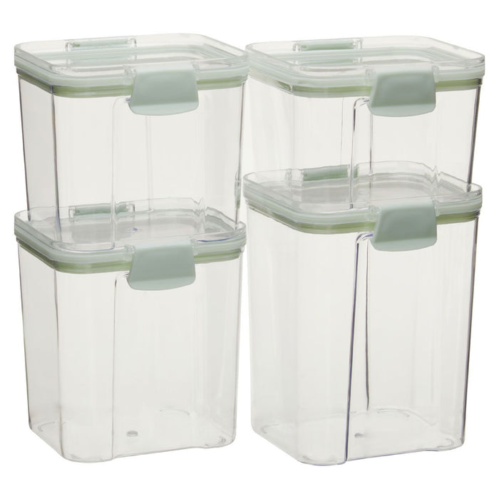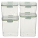 Durable Plastic Set of 4 Food Storage Boxes Stackable with Airtight Seal and Hinge Locking System