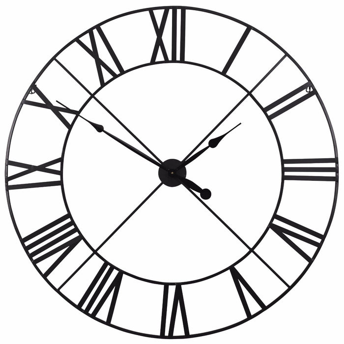 Extra-large 110cm wall clock with an open black metal frame and Roman numerals.