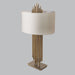 The Fable Table Lamp has varying heightened antique brass rodes. With a cream shade, this lamp is sure to add a visual element to your space.