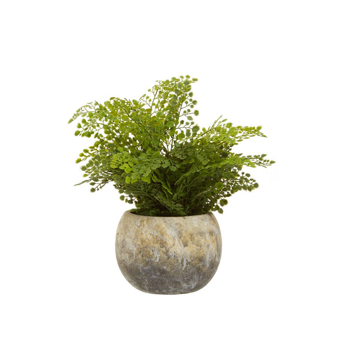 Fiori fern with cement pot. This synthetic Fiori will add elegance and a classical touch to floral arrangements with its lifelike accent.