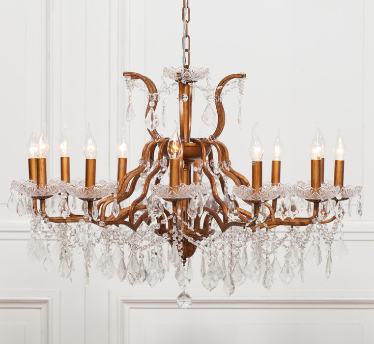 Gold 12 Branch Shallow Cut Glass Chandelier
