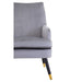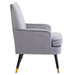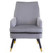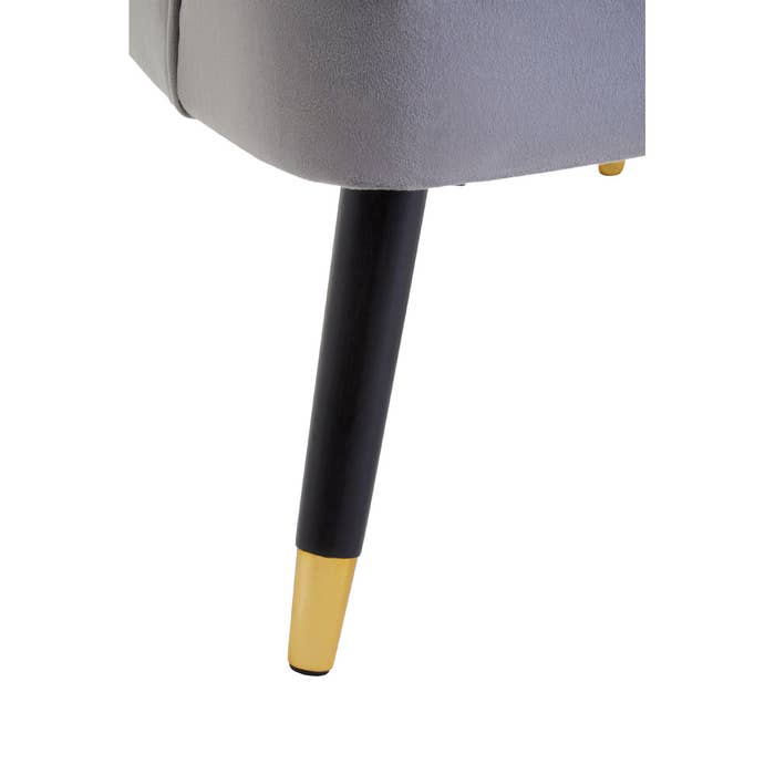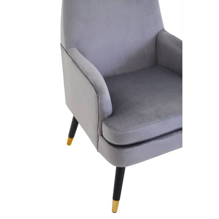 Elevate your space with this armchair, exuding a chic and refined aesthetic. Featuring elegant grey velvet upholstery, this piece is elevated by sleek black legs that are finished with a luxurious gold accent at the tips.