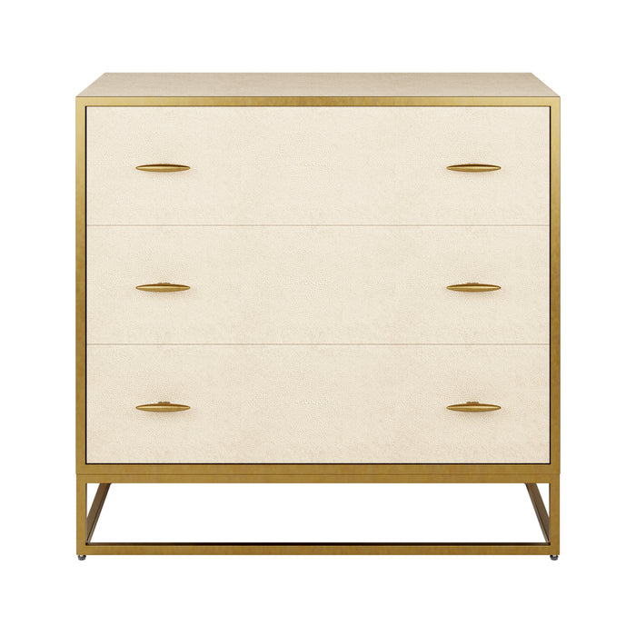 Hampton Faux Shagreen Chest of 3 Drawers Antique Brass Trim
