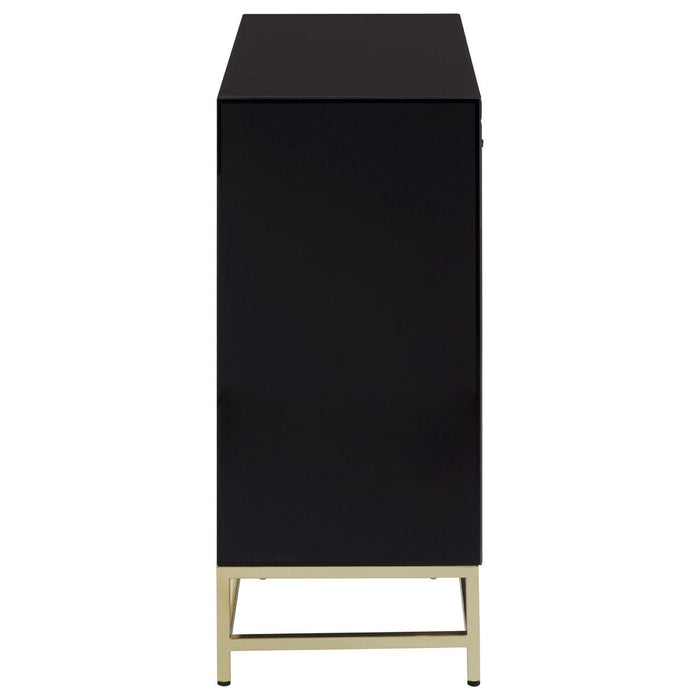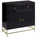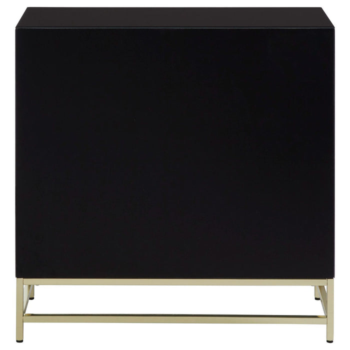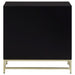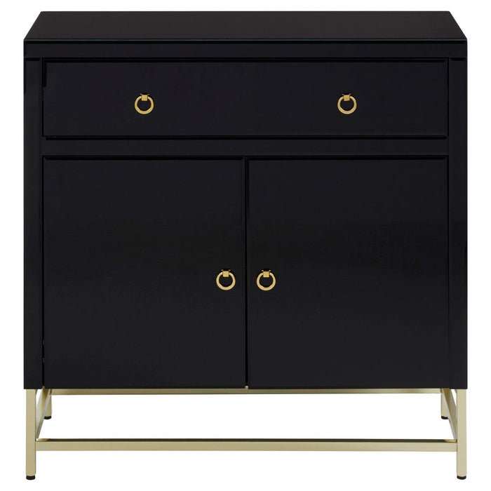 This stylish cabinet looks great coordinating with other boutique hotel styled furnishings. The Kensington Townhouse cabinet is a luxurious statement piece. Its reflective gold coloured frame is made from stainless steel, and supports a sleek black cabinet. The cabinet has a large sliding drawer at the top, while a pair of doors below open to reveal a single shelf. Gold coloured handles contrast with the black finish.