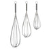 The set of three whisks are durable and strong to ensure they can deal with all your beating, whisking and mixing needs. The handles are made from stainless steel, which are rounded to give you a comfortable grip for better control when using.