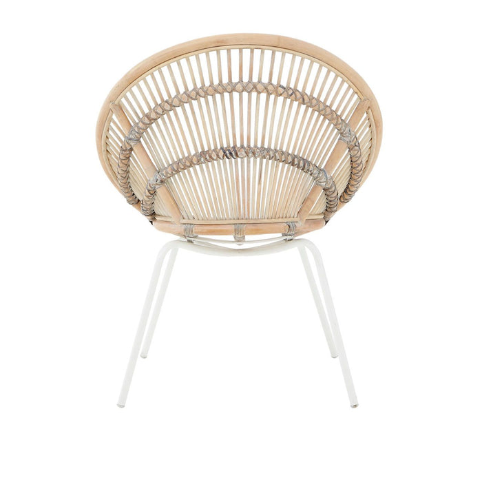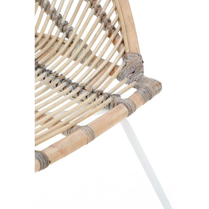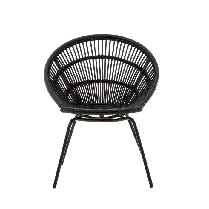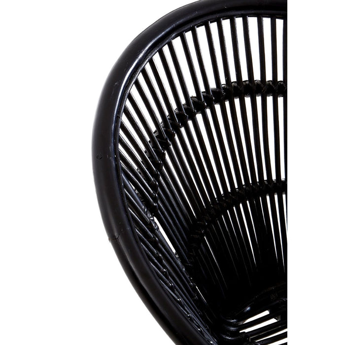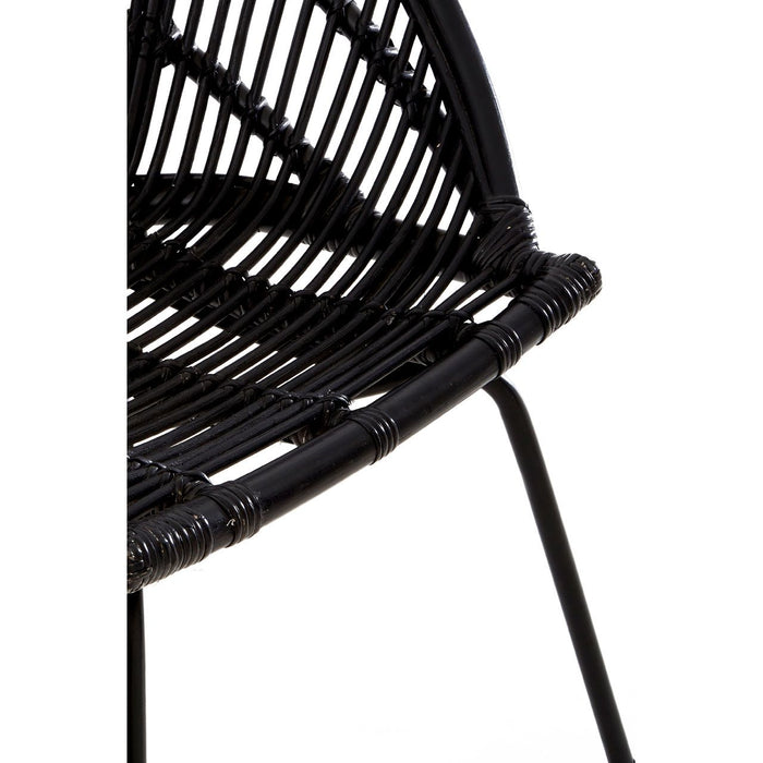 The Lagom rattan chair is an on-trend accent piece for contemporary interiors. This retro-inspired chair is made contemporary by its low profile and sleek rattan finish. Its angled black iron legs provide a lean and simple platform for the seat. Crafted from eco-friendly rattan, the chair's backrest fans outwards before tapering in at the front. This produces a spacious seat which has enough room to display a large cushion on.