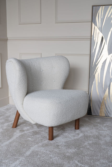 Our Lewis Wingback Occasional Chairs are a modern twist on a traditional chair design. Upholstered with a hardwearing, contemporary boucle, this chair is small on footprint but big on comfort. The Lewis chair has a low but generous seat and features complimentary buttoning and piping and sits on a sturdy solid wooden stained frame. Available in other boucle colours.