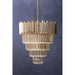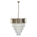 The Lustra chandelier is a traditional tier design with four tiers descending from large to small. The chandelier's top tier is created from iron and fashionably finished in cool silver. The three smaller tiers are created from sections of clear glass, bevelled to refract light and add a luxurious sense of depth.