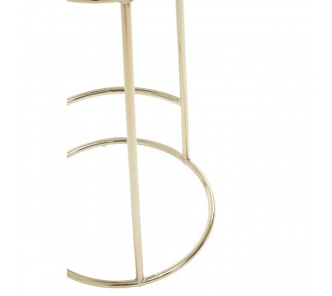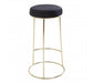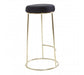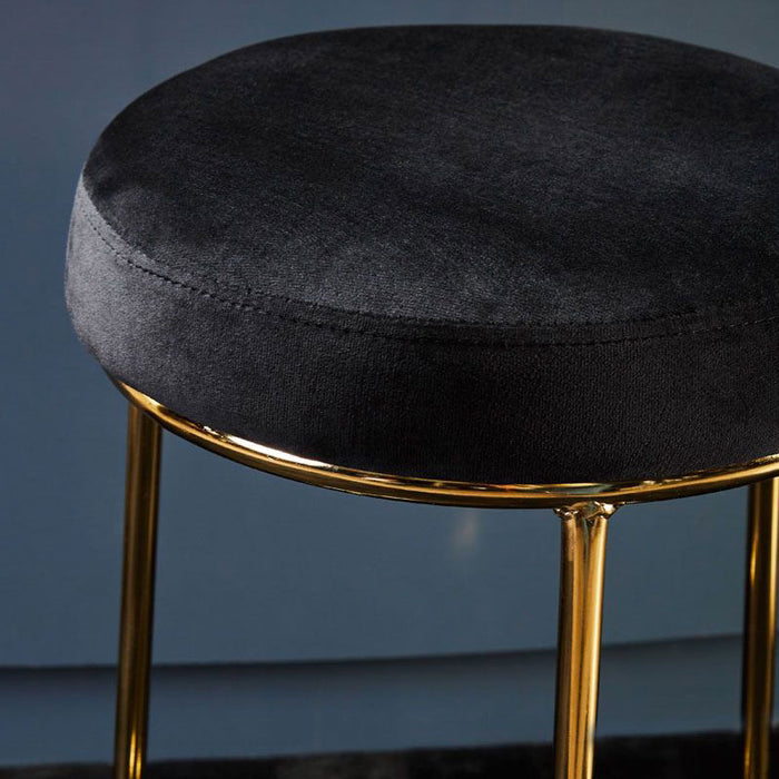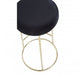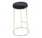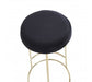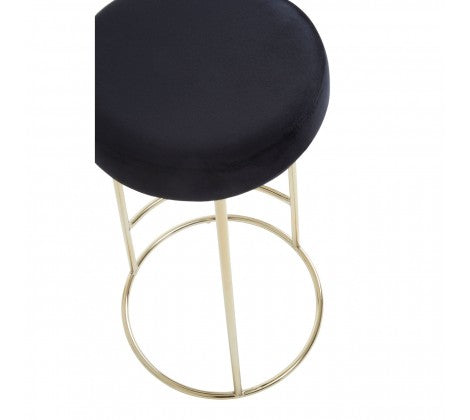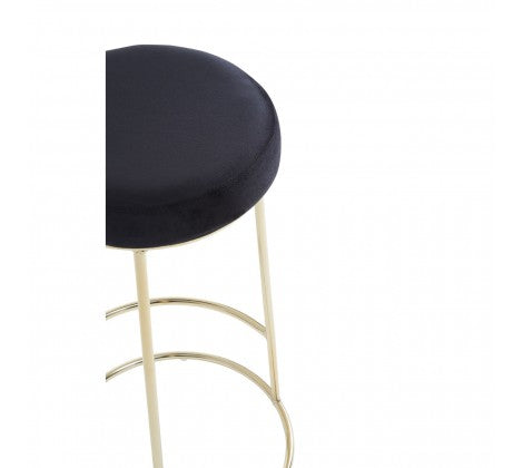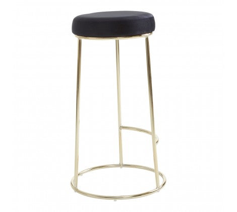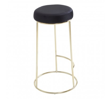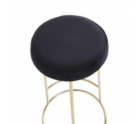 The black velvet Manhattan bar stool will make an elegant statement in a modern home or bar. This stool has a padded seat upholstered in black velvet. Sleek and minimal, the gold finish metal frame with footrest enhances the glam appeal of the design.