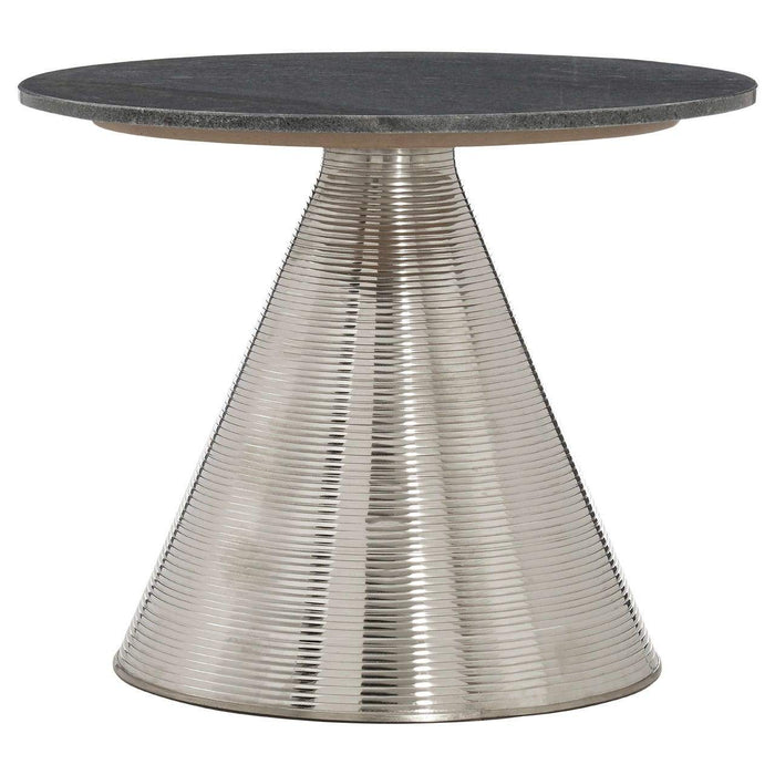 The Martini table is the height of luxury. With its textured silver finished base, supporting the smooth grey marble this contemporary design is a statement piece for any interior.