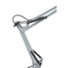 This studio design lamp is expertly crafted from a matte grey metal frame. It features a robust iron base and a curved shade, affixed to a scissor neck boom stand which easily adjusts to meet desired illumination levels.