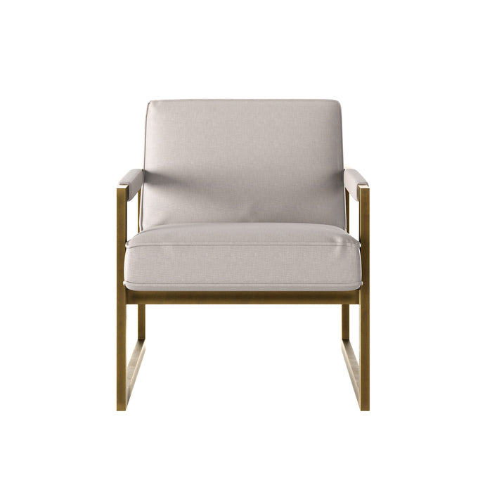 Clay chenille armchair with bronze style frame