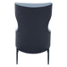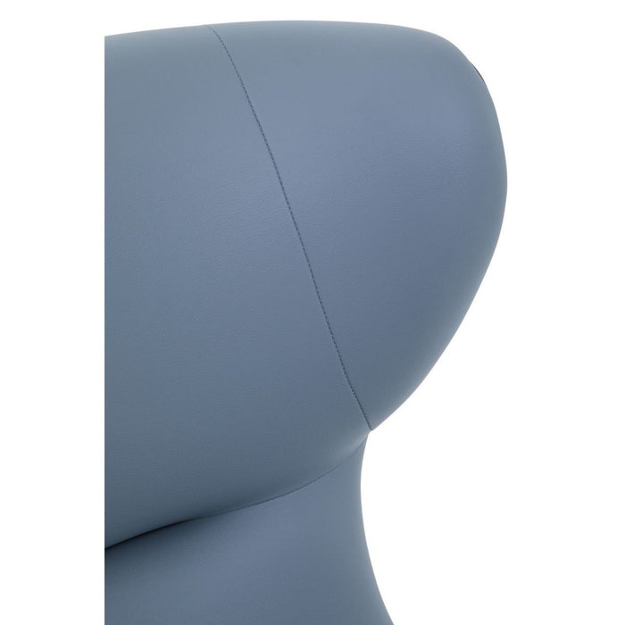 This mid-century accent chair with a curved back complements the contemporary aaesthetics of the living area. This grey velvet armchair features foam padding and a star base in warm metallic finish. This chair has additional backrest cushion and a neck support to ensure comfortable seating experience.