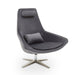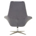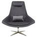 This mid-century accent chair with a curved back complements the contemporary aaesthetics of the living area. This grey velvet armchair features foam padding and a star base in warm metallic finish. This chair has additional backrest cushion and a neck support to ensure comfortable seating experience.